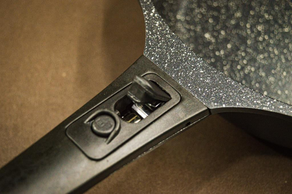 Nossas frigideiras são ideais para você preparar os seus bifes, bisteca de porco, frango e até mesmo os peixes. Tudo isso sem nada de óleo! Além disso, com as frigideiras você pode assar bolo e pão, tudo isso no forno elétrico. Elas contam com o cabo removível; você remove o cabo e pode levar ela ao forno. Por isso elas também servem para levar ao forno. Sem contar na praticidade e na limpeza. Nada gruda!